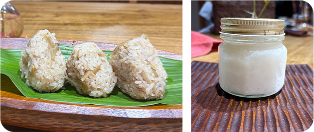 テキストを参考にお母さまが手作りした「かしわめしのおむすび」と「塩麴」