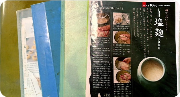 それから浅利妙峰さんの塩麴は、何年も作り続けています。気に入った記事はファイリングして、後から見返しています。